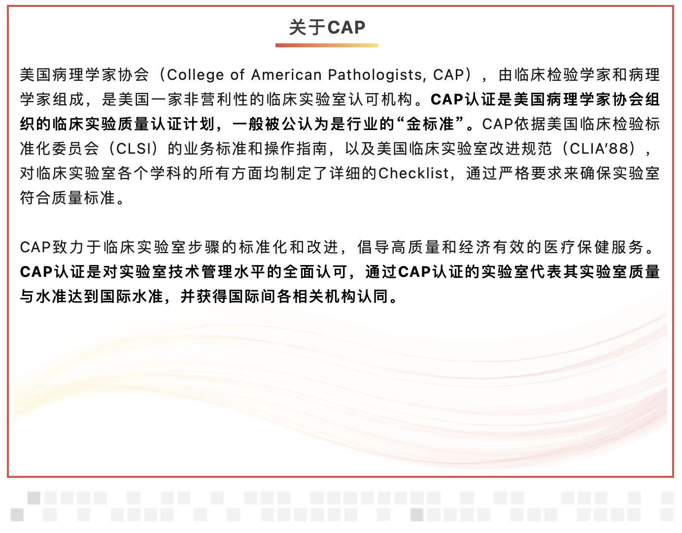經(jīng)綜合評定,CAP評審專家們一致對北京嘉寶醫(yī)學(xué)檢驗(yàn)實(shí)驗(yàn)室的檢測能力、質(zhì)量管理體系等給予高度評價。嘉寶醫(yī)學(xué)檢驗(yàn)實(shí)驗(yàn)室今后將持續(xù)嚴(yán)格堅(jiān)守各質(zhì)控節(jié)點(diǎn),為每份樣本負(fù)責(zé),確保每份報告精準(zhǔn)無誤。