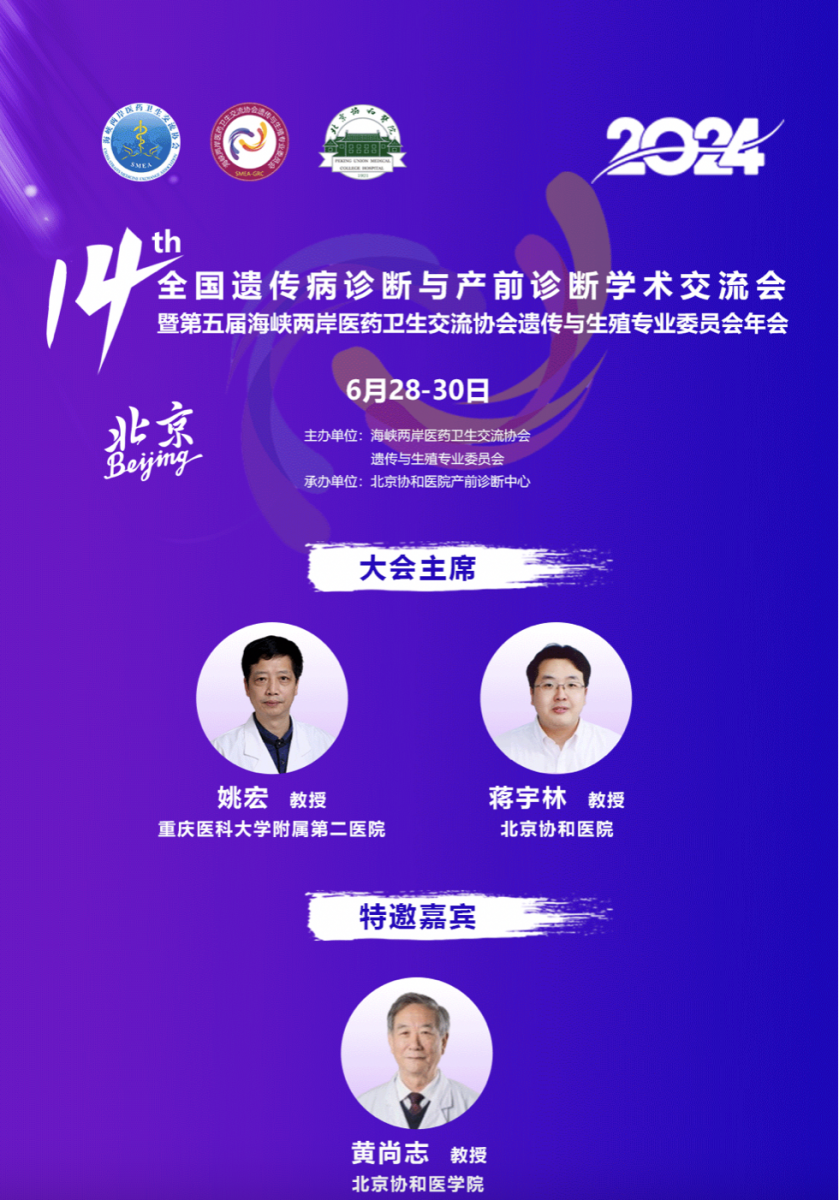 2024年6月28-30日,由海峽兩岸醫(yī)藥衛(wèi)生交流協(xié)會(huì)遺傳與生殖專業(yè)委員主辦,北京協(xié)和醫(yī)院產(chǎn)前診斷中心承辦的“第十四屆全國遺傳病診斷與產(chǎn)前診斷學(xué)術(shù)交流會(huì)暨第五屆海峽兩岸醫(yī)藥衛(wèi)生交流協(xié)會(huì)遺傳與生殖專業(yè)委員會(huì)年會(huì)”在北京即將召開。此次會(huì)議就“基因檢測(cè)新技術(shù)下的遺傳病篩查、診斷在生殖與產(chǎn)前診斷中的臨床運(yùn)用規(guī)范與治療”主題進(jìn)行廣泛、深入的探討與交流,以期加強(qiáng)國內(nèi)外相關(guān)專業(yè)領(lǐng)域的學(xué)術(shù)交流與合作,促進(jìn)我國醫(yī)學(xué)遺傳學(xué)??频陌l(fā)展。
