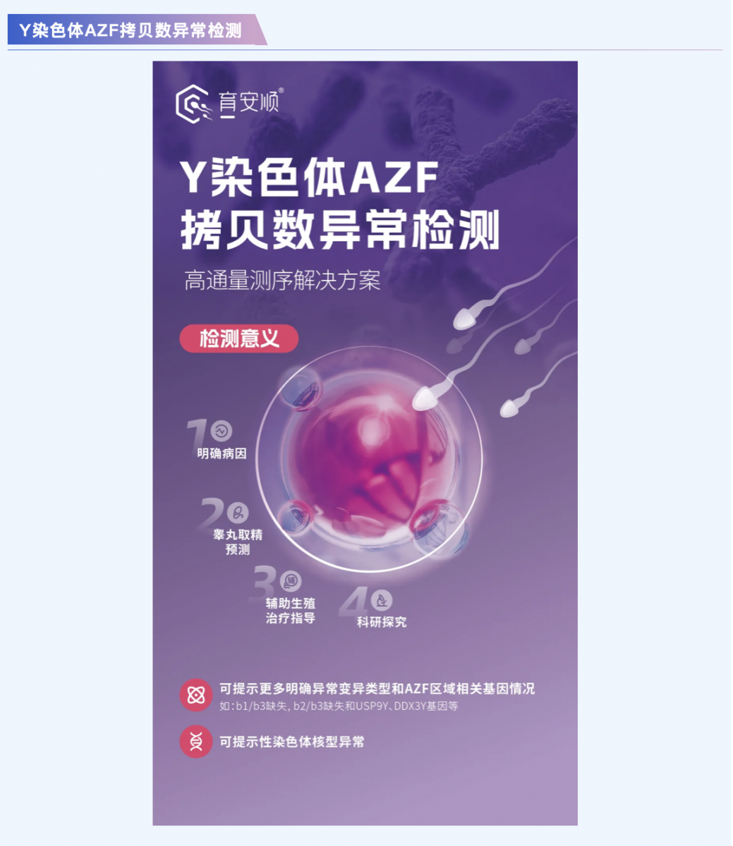 育安順®Y染色體AZF拷貝數(shù)異常檢測(cè),結(jié)合目標(biāo)區(qū)域捕獲技術(shù)及高通量測(cè)序技術(shù),采用Y染色體AZF區(qū)微缺失檢測(cè)試劑盒(專利號(hào)ZL 2015 1 0679999.1),檢測(cè)AZF區(qū)域拷貝數(shù)異常(缺失、重復(fù)、倒位等)的具體區(qū)域和大小以及相關(guān)基因情況,從而為男性不育患者提供科學(xué)的臨床治療方案和遺傳咨詢指導(dǎo)。