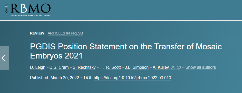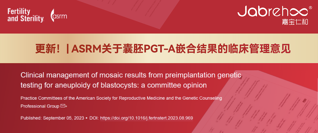 2023年9月5日,ASRM在《Fertil Steril》雜志上在線發(fā)表了 最新的關(guān)于囊胚PGT-A嵌合結(jié)果臨床管理意見的文件Clinical management of mosaic results from preimplantation genetic testing for aneuploidy (PGT-A) of blastocysts: a committee opinion...