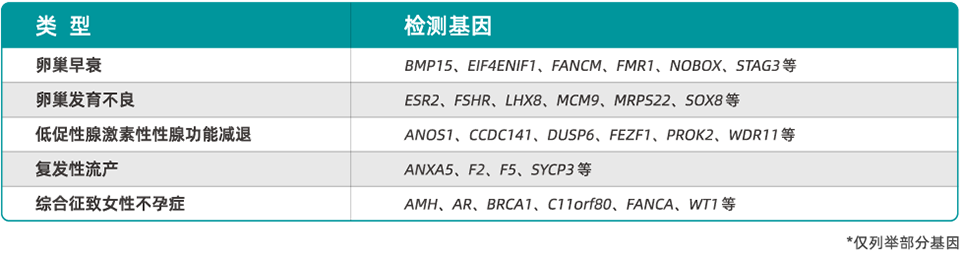 可一次性對(duì)242個(gè)女性不孕相關(guān)基因進(jìn)行檢測(cè),精細(xì)化解讀目標(biāo)基因,從而查找不孕不育遺傳學(xué)因素,為不孕不育患者提供科學(xué)的臨床方案和遺傳咨詢。